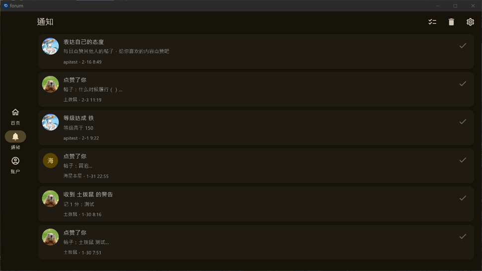 相比H5App封装的方式,StarForum 更强调“客户端感”。